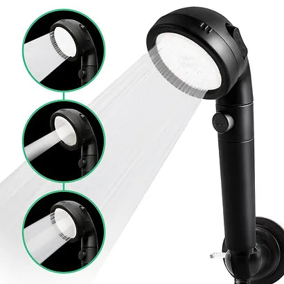 Enjoy 3 powerful spray settings. The jet mode is perfect for stiff necks and muscles. We engineered the spray holes to give you a relaxing shower sensation and generate 2x faster water flow velocity than regular shower heads. The Rainfall setting will get you more coverage which is optimal for rinsing and the Massage setting is a combination of both rainfall and jetting - Power & Coverage. Our shower heads also feature an on/off button making it convenient for washing long hair, children & pets.