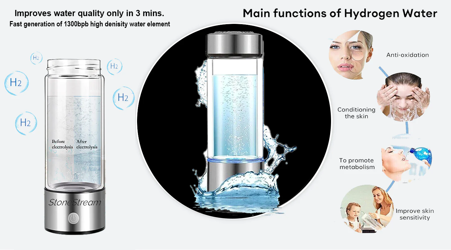 Elevate your wellness regimen with our Hydrogen Water Bottle, an elixir for a rejuvenated self. Harnessing the power of hydrogen, this innovative bottle offers a multitude of health benefits, all with the convenience of a simple sip. Here’s how this remarkable water can transform your daily routine: