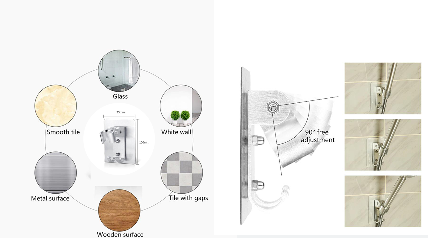 Przyklejony uchwyt ścienny do główki prysznicowej