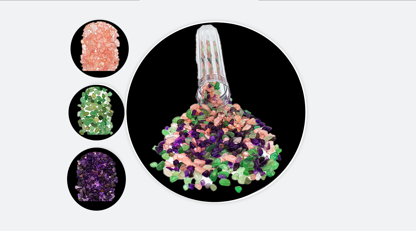 Kamienie ametyst, kwarc różowy i zielony jadeit